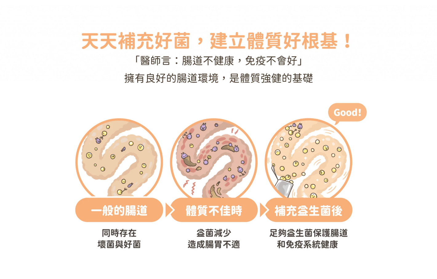 針對腸胃專選好菌,搭配益生元讓腸內好菌充分發揮