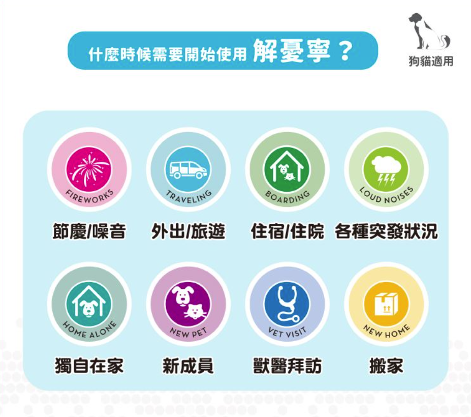 輔助管理犬貓行為問題的天然營養保健品協助緩解犬貓情緒問題幫助犬貓在陌生或緊迫的環境中保持冷靜(例如:醫院看診、手術前、住院期間、幼年離乳、進入新環境、噪音、外出旅與分離焦慮等。