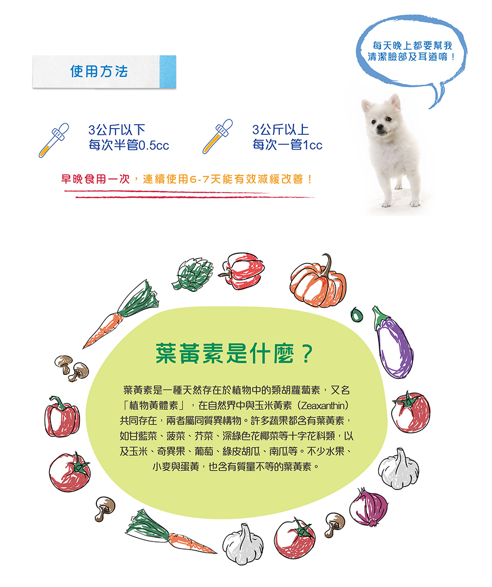 專為寵物犬、貓調製高濃縮游離型葉黃, 能幫助保護視力,維持眼睛清新明亮。