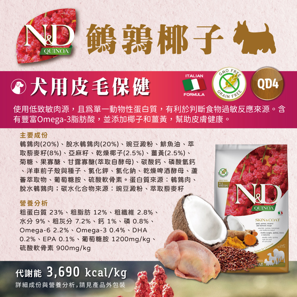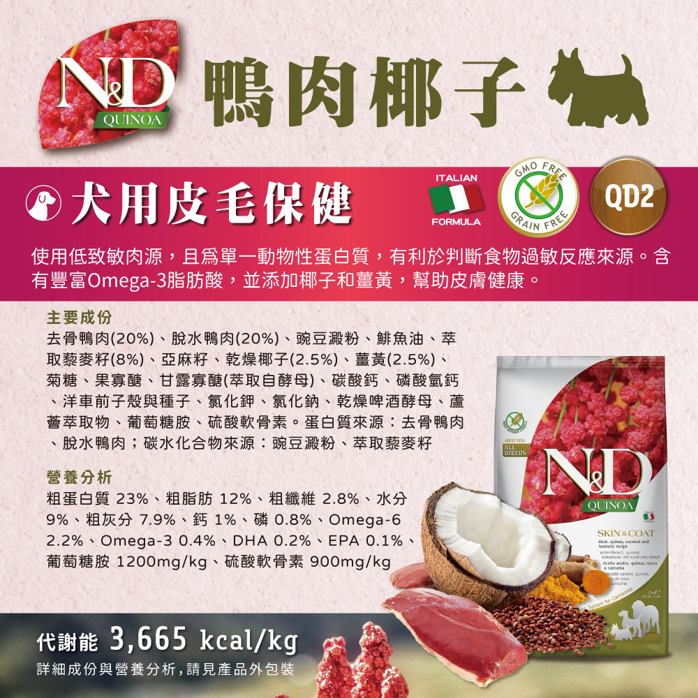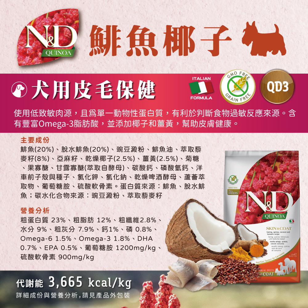 N&D天然藜麥無穀機能系列是一個具有保健功效的全新無穀產品,來照顧您寶貝的健康。