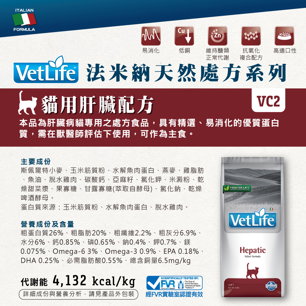 Farmina法米納 Vet Life VC-2 貓用肝臟配方 2kg