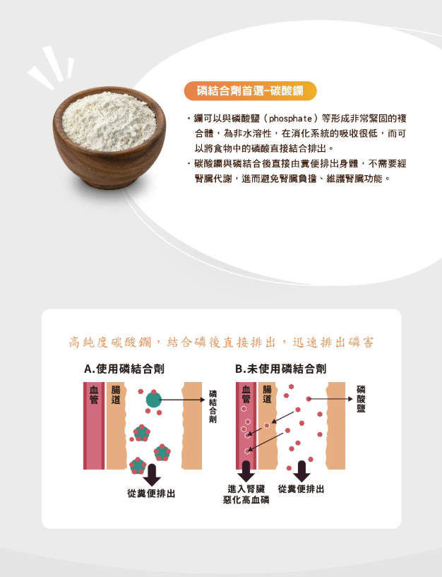 1. 打開膠囊撒在食物上:打開膠囊將粉末隨餐混入食物,讓碳酸鑭充分結合食物中的"磷",並於15分鐘內食用完畢。
